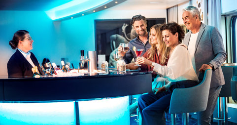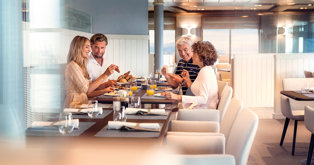 Laat je elke dag verrassen in de drie restaurants aan boord, waar topchefs gerechten serveren die variëren van internationale klassiekers tot regionale specialiteiten. Na het diner kun je ontspannen in de bar of lounge, waar vaak lezingen, live muziek of sfeervolle presentaties worden gehouden. Een fijne afsluiting van je avontuurlijke dag.