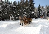 Om de plaats per auto te bereiken zijn regelmatig sneeuwkettingen nodig