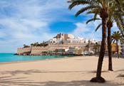 Het meest attractieve plaatsjes aan de 'Oranjebloesemkust' of Costa del Azahar is toch wel Peniscola. De stad dankt zijn naam aan zijn unieke ligging op een hoge, rotsachtige landtong. Tussen de oude stadsmuren is het zalig rondslenteren in de kronkelende, smalle steegjes langs witgekalkte huisjes met bloemenbalkons, terrastuinen, leuke boetiekjes en typisch Spaanse tapasbars. De imposante, dertiende eeuwse burcht in Romaanse en Catalaans-gotische stijl was ooit een toevluchtsoord voor de excentrieke paus 'Papa Luna'. Ook de bekende film 'El Cid' werd hier opgenomen. De charmante vissershaven is zeker een bezoekje waard. Elke dag meren hier een dertigtal typische vissersboten aan met verse vis, die in 'la Lonja' geveild wordt. Aan beide zijden van de kust strekken zich brede, zachtaflopende stranden uit waar u een uitgebreid aanbod van watersportfaciliteiten terugvindt. Ook fitness, tennis, squash en minigolf zijn leuke alternatieven, aan jou de keuze! Fietsliefhebbers en wandelaars kunnen kiezen uit tal van mooie routes langs de kustlijn of in het verrassende binnenland. De prachtige palmenboulevard met zijn leuke bars, uitstekende visrestaurants en hippe discotheken staat garant voor gezelligheid, waar straatmuzikanten en kunstenaars de avonden kleuren.