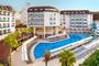 Ramada Resort by Wyndham Side ligt net buiten Side, in de regio Antalya in Turkije, en biedt alles om je vakantiedag zelf in te vullen. De ochtend start bij het zwembad of met een sportmoment, daarna volgt een lunch op het terras of een rit richting het strand in de buurt. Op het terrein wissel je moeiteloos tussen ontspanning en activiteit, met sportfaciliteiten, wellness en meerdere plekken voor eten en drinken. In Ramada Resort by Wyndham Side hoef je niet te kiezen tussen binnen blijven of eropuit gaan. Je stapt zo richting Side voor winkels, historische bezienswaardigheden en de oude haven, en keert later weer terug voor het avondprogramma of een rustig moment bij de bar. Wat staat vandaag op het plan: actief bezig zijn, het strand op of de omgeving verkennen? Dit hotel geeft je de ruimte om elke dag anders in te delen.