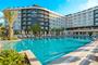 Duik in een wereld van moderne luxe en Turkse gastvrijheid in Vox Maris Resort. Tussen palmbomen en zee schittert dit resort aan de kust van Side in Turkije. In Vox Maris Resort verwelkomen de witte gebouwen met turquoise accenten je als een mediterrane oase van stijl en comfort. Verfrissing vind je in het spectaculaire aquapark waar glijbanen zorgen voor waterpret voor alle leeftijden. Na het spetteren ontspan je in de authentieke Turkse hamam, waar eeuwenoude wellnesstradities je volledig tot rust brengen. Side verrast je met zijn mix van modern strandleven en fascinerende geschiedenis op slechts 5 kilometer afstand. Wandel tussen de indrukwekkende Apollotempel en het Romeinse amfitheater, beide meer dan 2000 jaar oud en prachtig verlicht in de avonduren. Hier ervaar je vakantie zoals het bedoeld is.